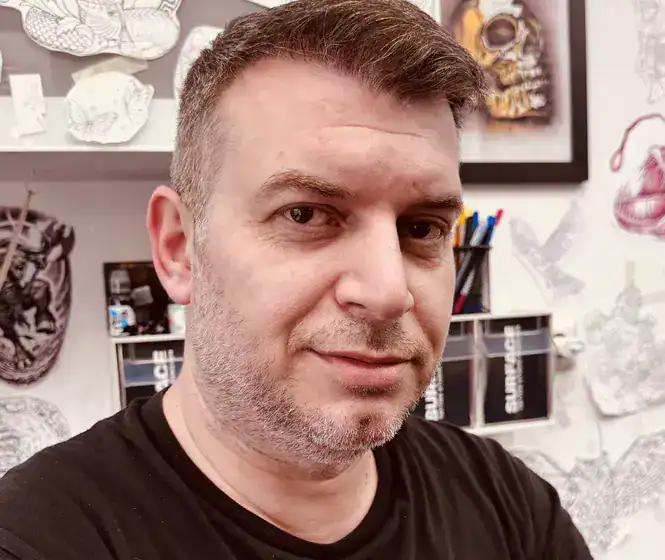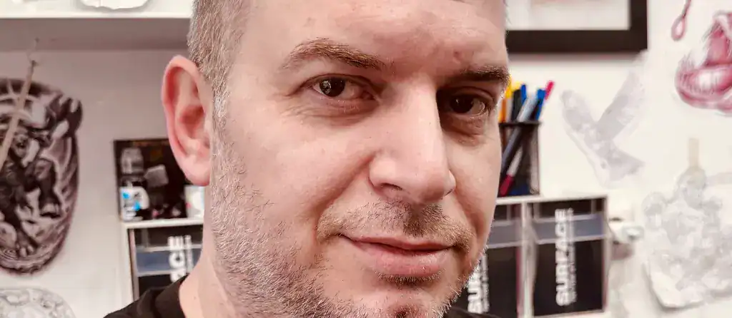Perica Bozhinovski hat die Kunsthochschule 2002 beendet und war seitdem als freischaffender Künstler tätig. Schon während der Kunsthochshulzeit haben ihn realistische Zeichnungen fasziniert und wurden zu seinem Schwerpunkt. Mit den Jahren hat er auch das Tätowieren als Kunstform für sich entdeckt und auch hier sind realistische Tätowierung sein favorisierter Tattoostil. Seit 2015 Arbeitet er ausschließlich als professioneller Tätowierer und ist seit November 2019 fest im Surface Team tätig.