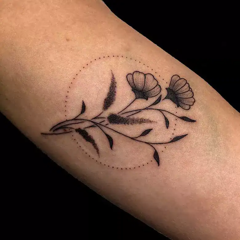 Fineline Whip Shading Flower – Blümchen mit einem Kreis aus Punkten.